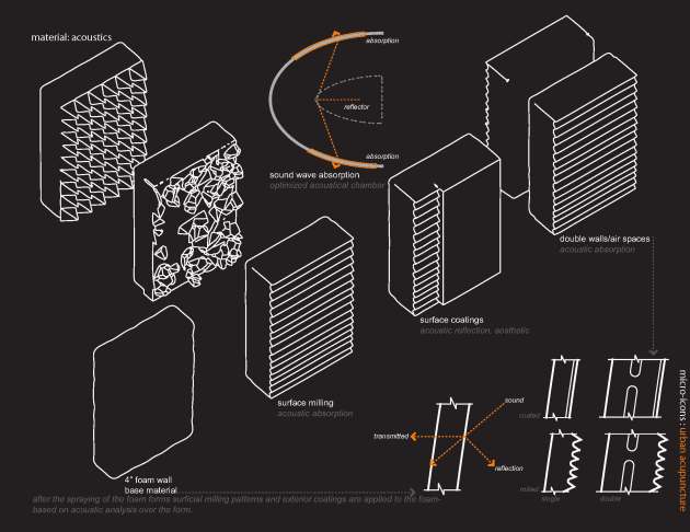 Tests 02 + 03 of the sprayed polyurethane foam structure. In these tests we were testing several parameters/variables between the digital model, kuka robotic language, and the physical manifestation. In the third test we have added a control to the actuator adding noticeable differences, and have further continued to test this variable, standoff distance and velocity. Several more tests are scheduled to investigate various milling patterns and coatings which will be applied to enhance durability and acoustical reflection. Full-scale mock-ups will follow the next three posted tests.