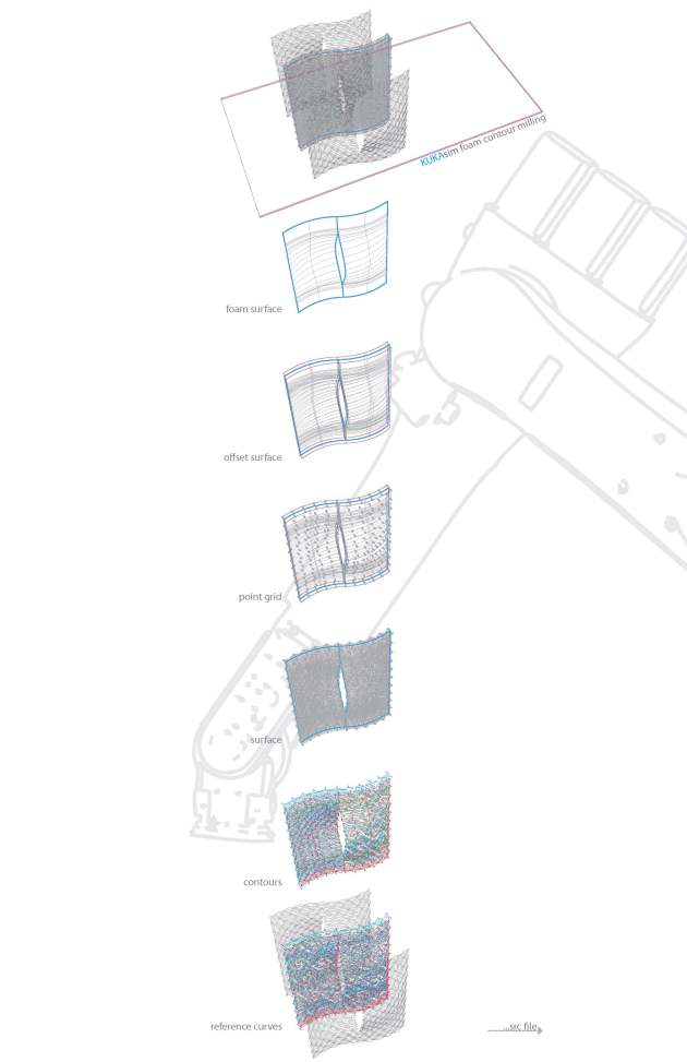 This is the initial stage of test 5 with the kuka 7-axis robotic arm and spray polyurethane foam. Here we are testing standoff control and wait time between layers based off of our previous variable matrix testing. With new regulators being added to the tanks we should game slightly more control between the consistency of layers. The next phase will focus on secondary applications such as acoustical sound wave manipulation through the use of milling patterns and surface coatings.