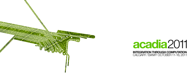 The ACADIA 2011 Annual Conference will explore integrative trajectories and areas of overlap that have emerged through computation between design, its allied disciplines of engineering and construction, and other fields, such as computer science, material science, mathematics and biology. The conference will highlight experimental projects in which methods, processes, and techniques are discovered, appropriated, adapted, and altered from elsewhere, and digitally pursued.
