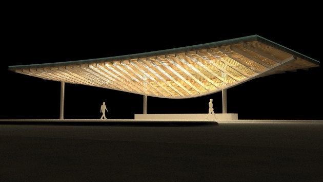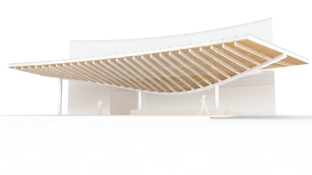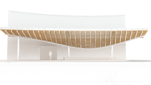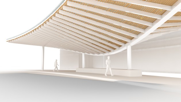 -Drop-off canopy studies utilizing a typical canopy structural system with a ribbed ceiling below that mimics monocoque boat structures.