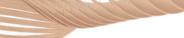 -Iteration of the Strip Morphologies experimentations that creates a suspended ceiling of steam-bent wood strips.