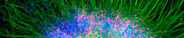 Dr. Albert Pan “Brainbow” zebra fish. Neurons are labeled in multiple colors with Brainbow fluorescence microscopy. Three fluorescent proteins (cyan, yellow and red) are randomly taken up by various neurons, offering a palette of dozens of colors to help scientists follow complex neural pathways. Shown here is a five-day-old zebra fish larva viewed from the […]